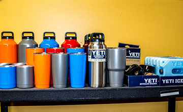 We offer Yeti™ products at prices less than retail! We keep a full stock of Tundra®, Hopper™, Tank®, Rambler™, Gear, and Accessories. Find out our corporate rates are for Yeti™ by calling us today. Check out Yeti™'s official site for their full product line.